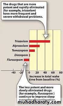 • Triazolam: short duration of action and, therefore, is used to induce sleep in patients with recurring insomnia.