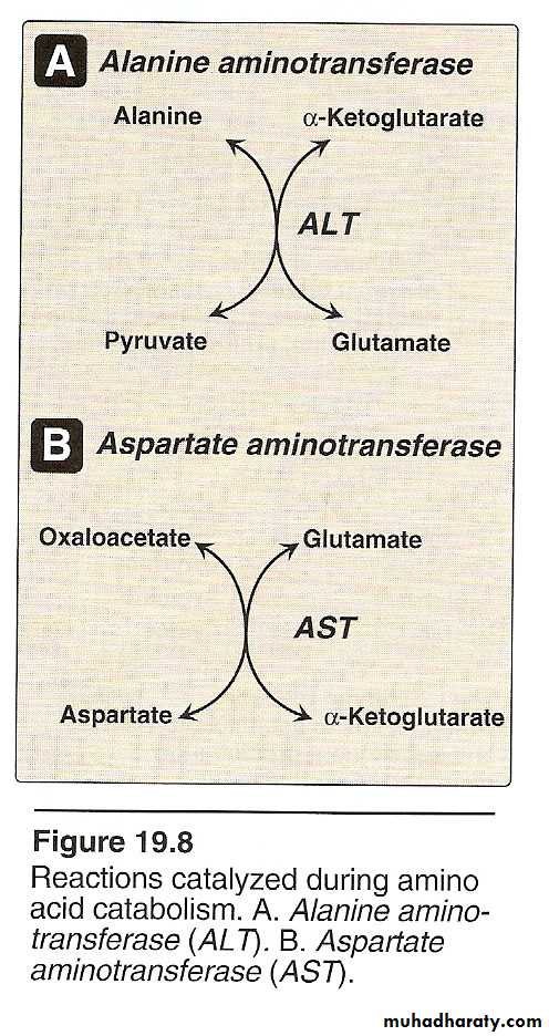 elevated and the reaction proceeds in the direction of amino acid degradation and the formation of ammonia It is converted to α ketoglutarate with liberation of NH3.