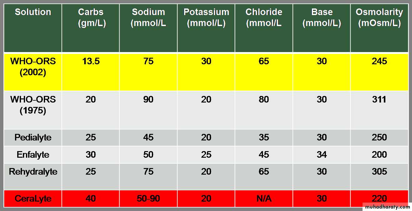 MAINTENANCE PHASE MILD Diarrhea : 100 cc /Kg/24HrSEVERE Diarrhea : 10-15 cc /Kg/ Hr in addition to milk feeds until diarrhea stops.