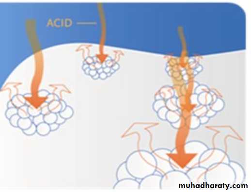 Solubility of enamel increases from the enamel surface to the DEJ.When fluorides are present during enamel formation or are topically applied to the enamel surface, the solubility of surface enamel is decreased.