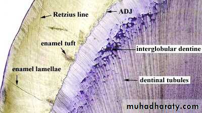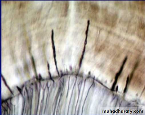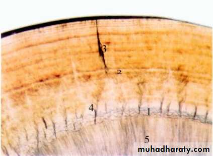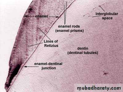 They are mainly found in the inner surface of tooth. these bands are composed of different contents of organic material and varied permeability.