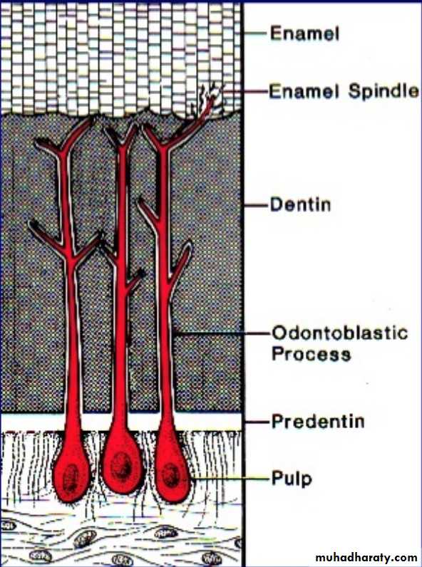 5.Enamel SpindlesOdontoblastic processes sometimes crosses DEJ and their end is thickened.