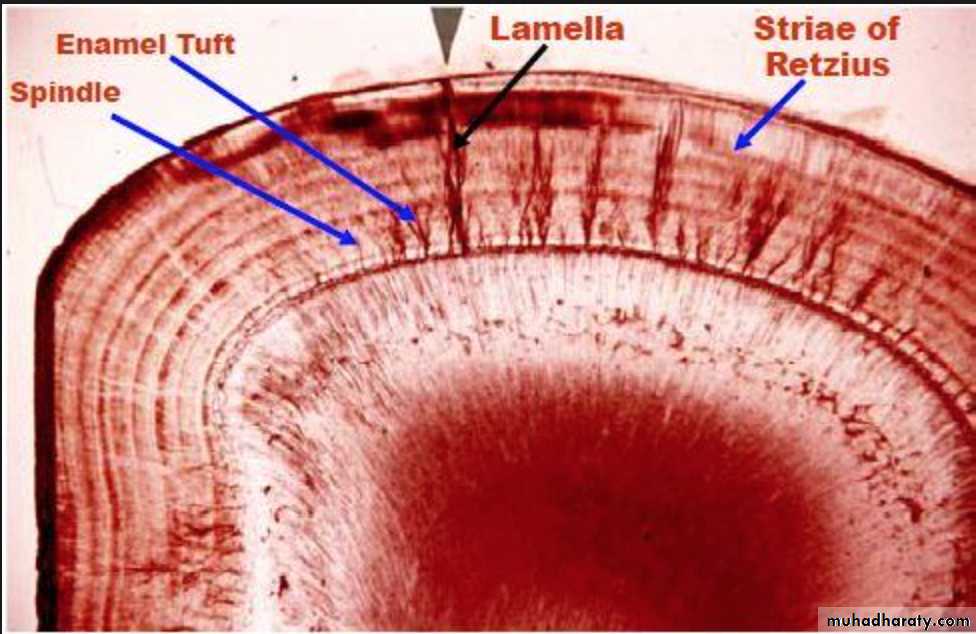 These are leaf like defects present in enamel and may extend to DEJ.They contains organic substances. Lamellae are commonly found at the base of occlusal pits and fissures.