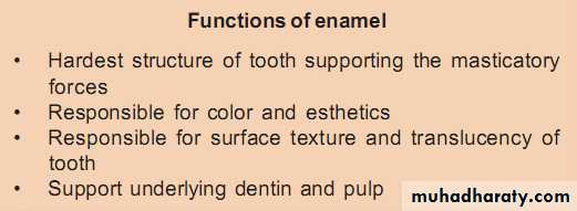 Enamel has a rigid structure. But it is brittle.The hardness also decreases from outer surface of the enamel to its inner surface. Also the density of enamel increases from dentino-enamel junction to the outer surface.