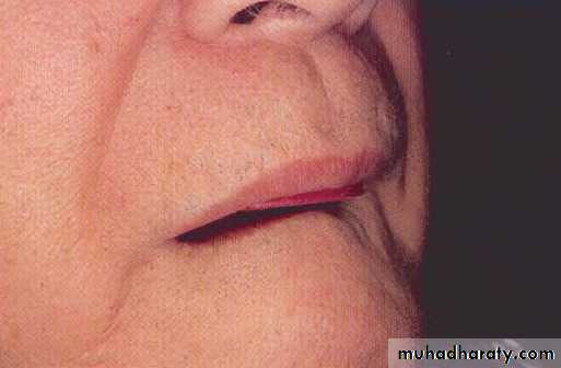 Anteriorly extend 2mm below relaxed lip& oriented to be parallel to inter pupillary line.