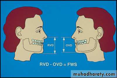 The inter occlusal distance (free way space) is the distance or gap existing between the upper and the lower teeth when the mandible is in the physiological rest position. It is usually 2-4 mm when observed at the position of the first premolars.