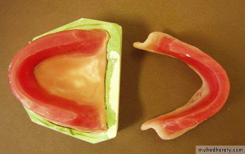In case of failure in orientation of correct occlusal plane, that can be discovered clinically in the try-in step of complete denture construction, we should correct the defect by the following;