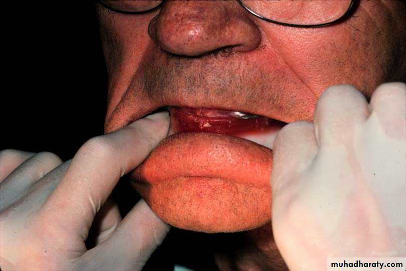 • instruct the patient to turn the tongue back ward toward the posterior border of the upper denture.