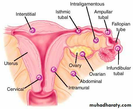 The vast majority of ectopic pregnancies implant in the Fallopian tube. Pregnancies can grow in the fimbrial end (5% of all ectopics), the ampullary section (80%), the isthmus (12%), and the cornual and interstitial part of the tube (2%).[3] Mortality of a tubal pregnancy at the isthmus or within the uterus (interstitial pregnancy) is higher as there is increased vascularity that may result more likely in sudden major internal hemorrhageNon-tubal ectopic pregnancy : While a fetus of ectopic pregnancy is typically not viable, very rarely, a live baby has been delivered from an abdominal pregnancy. In such a situation the placenta sits on the intra-abdominal organs or the peritoneum and has found sufficient blood supply. This is generally bowel or mesentery, but other sites, such as the renal (kidney), liver or hepatic (liver) artery or even aorta have been described. Support to near viability has occasionally been described, but even in third world countries, the diagnosis is most commonly made at 16 to 20 weeks gestation. Such a fetus would have to be delivered by laparotomy. Maternal morbidity and mortality from extrauterine pregnancy is high as attempts to remove the placenta from the organs to which it is attached usually lead to uncontrollable bleeding from the attachment site.