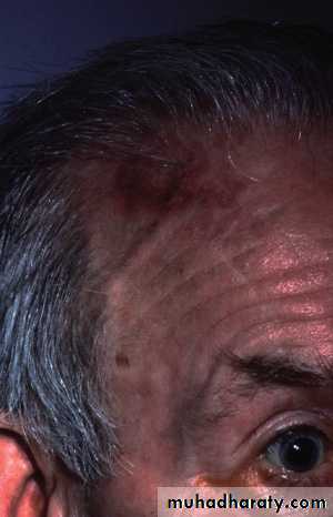 Temporal ArteritisThis disorder, also known as giant cell arteritis, is characterized by a subacute granulomatous inflammation (consisting of lymphocytes, neutrophils, and giant cells) that affects the external carotid arterial system, particularly the superficial temporal artery and the vertebral artery. Inflammation of the pain-sensitive arterial wall produces the headache. Thrombosis may occur in the most severely affected arteries.This syndrome, which affects women twice as frequently as men, it is uncommon before the age 50 and is frequently associated with malaise, myalgia, weight loss, arthralgia, and fever (the polymyalgia rheumatica complex).