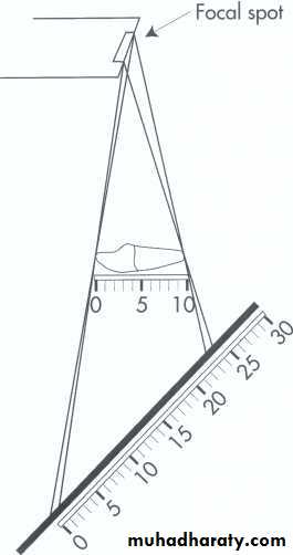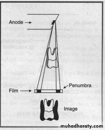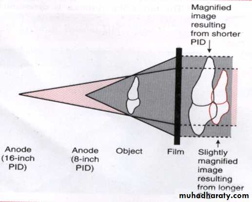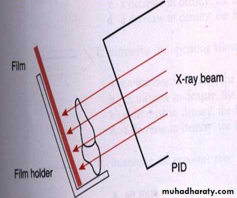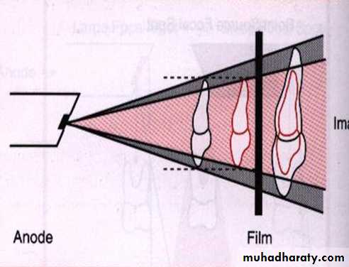 Object-film alignment:The object and film must be parallel to each other if the object and film are not parallel an angular relationship result and this produce variation of distance between the tooth and the film.