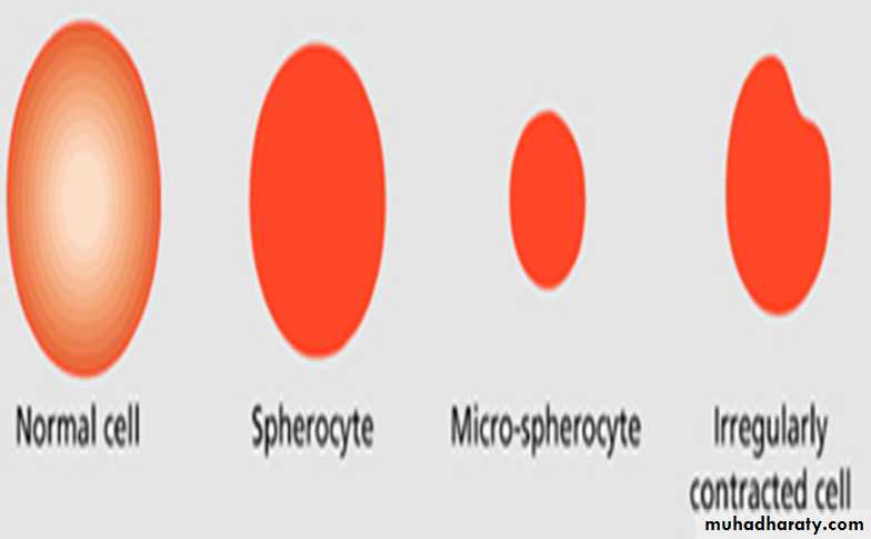 The abnormal red cells lysis is caused by a defect in cytoskeleton : involves a partial deficiency of spectrin (RBC membrane protein). The spherical shape has two effects on RBC. 1.they become trapped in the splenic cord. 2.they have shortened life span.The abnormal membrane also demonstrate an increased permeability of sodium