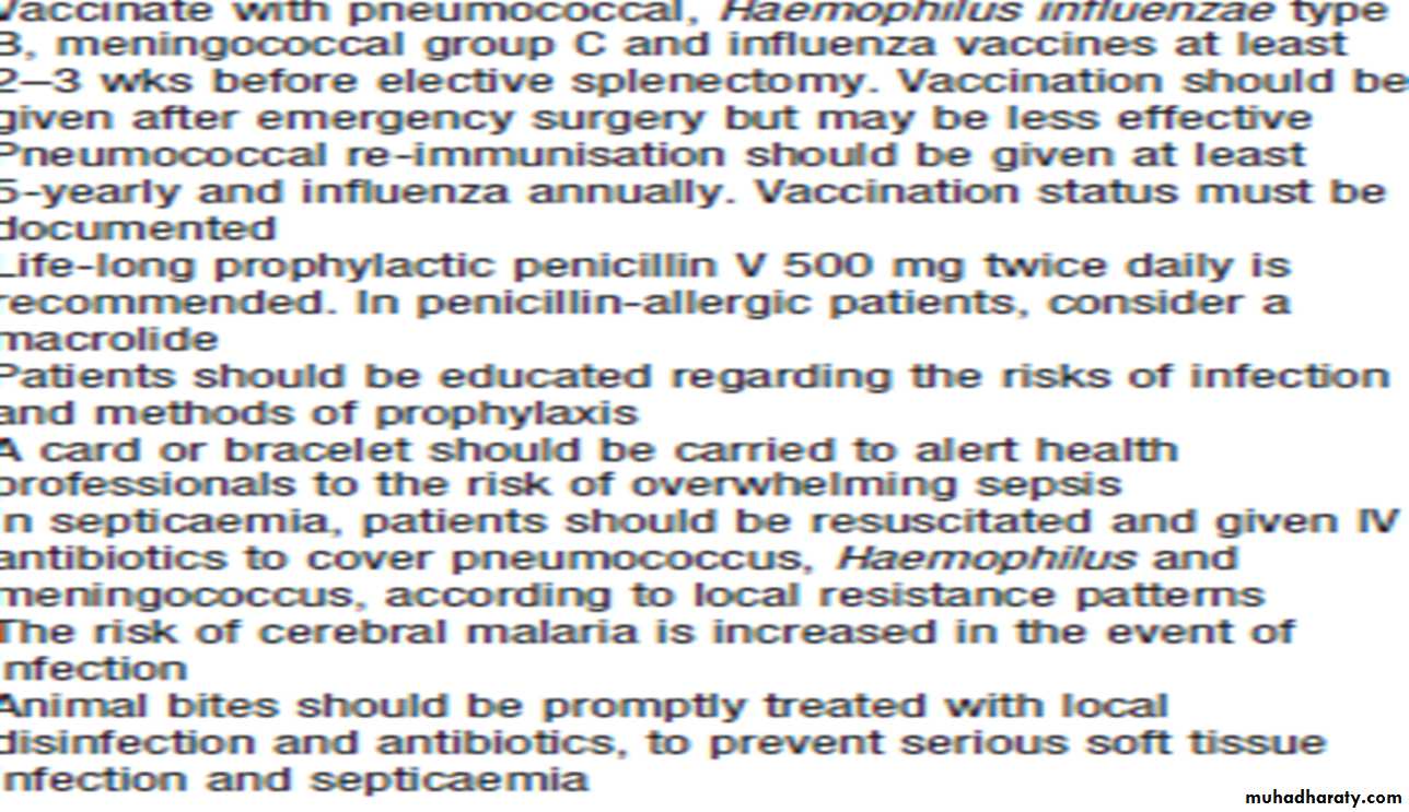 Management of the splenectomise d patient