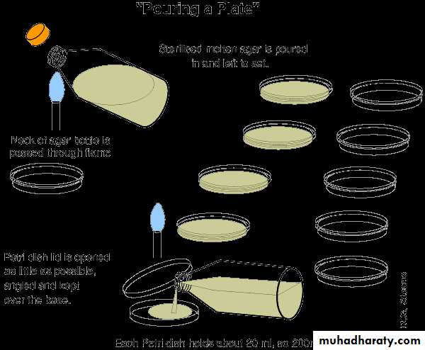 Cooling the media and adding the media to petridishes or vials ,wait until solidify, plates are kept inverted