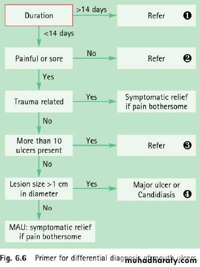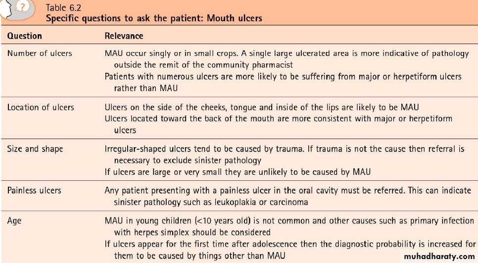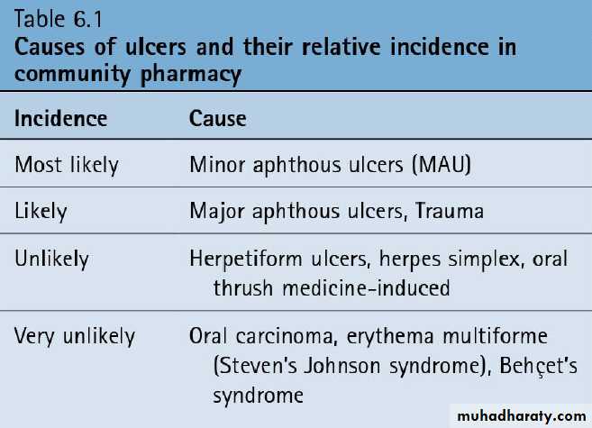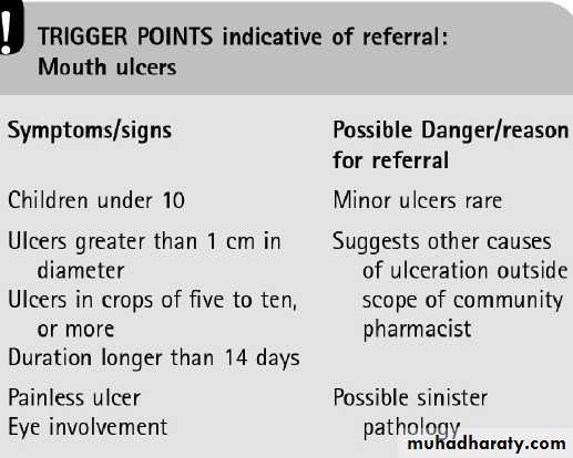 • Mouth ulcers:Aphthous ulcers more commonly known as mouth ulcers is a collective term used to describe various different clinical presentations of superficial painful oral lesions that occur in recurrent bouts at intervals between few day to a few months.