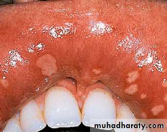 Usually presents as creamy- white soft elevated patches.