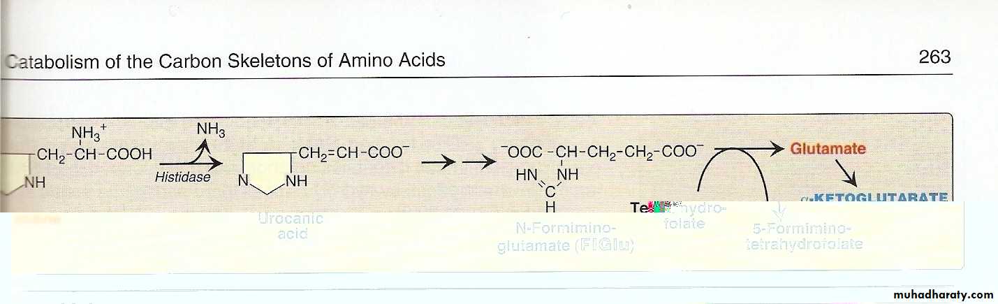 Usually metabolized through histidase which act on histidine to split off ammonia and form urocanate.