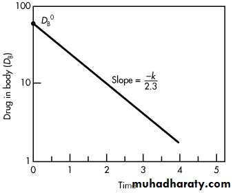 INCLUDEPICTURE "mk:@MSITStore:E:\\lec\\stage%204\\Applied%20Biopharmaceutics%20and%20Pharmacokinetics%205th%20Ed-D.Murtadha%20Alshareifi.chm::/3.%20One-Compartment%20Open%20Model%20-%20Intravenous%20Bolus%20Administration_files/loadBinary_034.gif" \* MERGEFORMATINET where D B = drug in the body at time t and D B 0 = drug in the body at t = 0. When log D B is plotted against t for this equation, a straight line is obtained. In practice, instead of transforming values of D B to their corresponding logarithms, each value of D B is placed at logarithmic intervals on semilog paper.