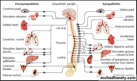 5.Exocrine glands :Increase secretion of lacrimal , salivary ,and digestive .