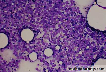 ALL(Lymphoblast) AML (Myeloblast) Blast size :small Large Cytoplasm: Scant Moderate Chromatin: Dense Fine, Lacy Nucleoli :Indistinct Prominent Auer-rods: Never Present in 50% present 2.Bone marrowaspiration andtrephine biopsy confirm acute leukaemia (blast > 20%)