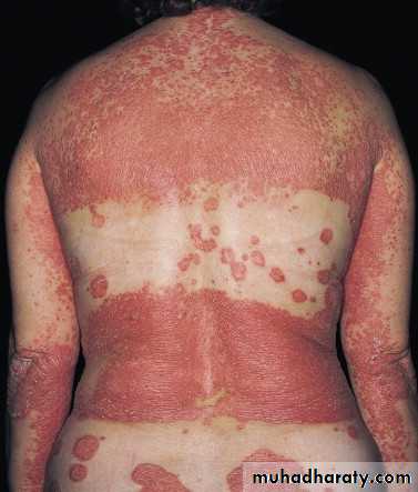 Rx: Acitretin, methotrexate, PUVA, narrow-band UVB, and intermittent courses of topical steroids under plastic occlusions.