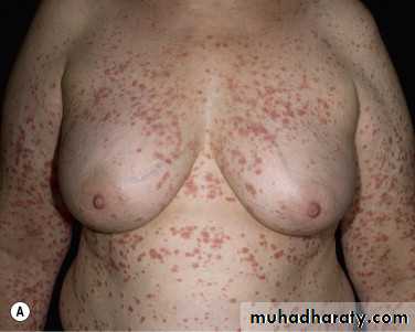 It may precede (15%), accompany, or, more often, follow the skin manifestations.