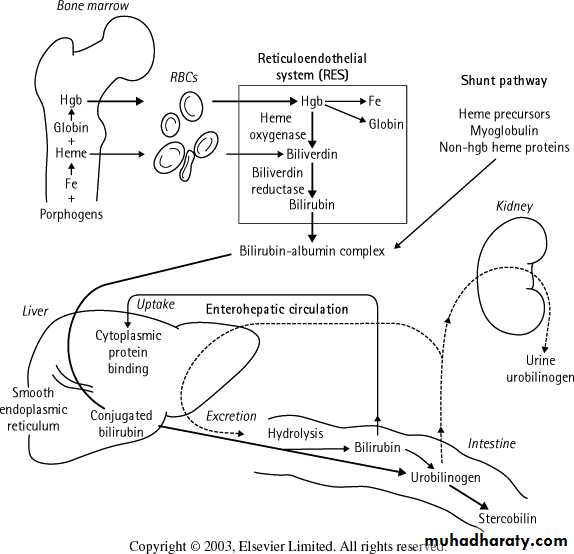 • 75% of heme from senescent RBC Hb in RE system• 25% of heme from Hb of ineffective erythropoiesis in the BM & from myoglubin , cytochromes , catalase & free heme .