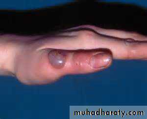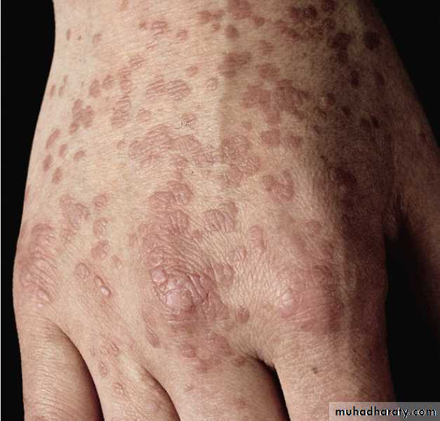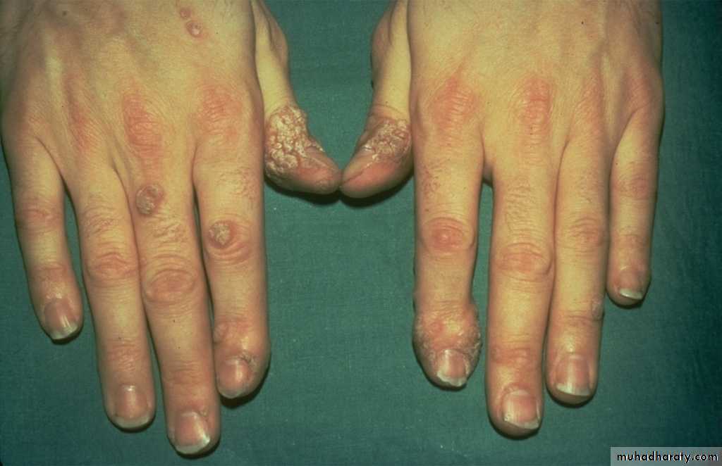 Common warts ( verruca vulgaris): single or multiple papules with rough surface.Usually affect the hands, but can appear anywhere.