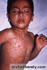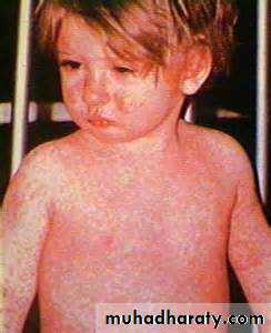 Catarrhal stage:2 days of fever, running nose, red eyes, then photophobia and koplik’s spots