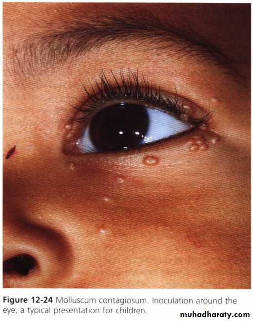 Molluscum contagiosum* Pox virus, transmitted by direct contact and sex