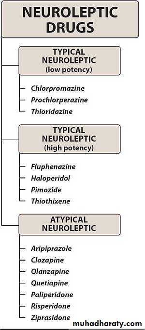 High potency: Trifluoperazine, , fluphenazine, haloperidoleConventional Antipsychotic Agents