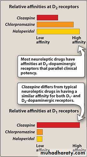 The atypical agents have stronger blockade of receptors for serotonin, the risk of extrapyramidal reactions is low.