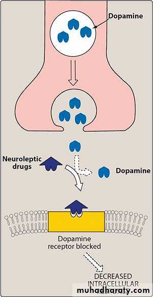 Conventional antipsychotic drugs suppress symptoms of psychosis by blocking dopamine (D2) receptors in the mesolimbic and mesocortical areas of the brain regions.