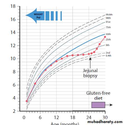 • weight that falls or remains below the 5th percentile for age.