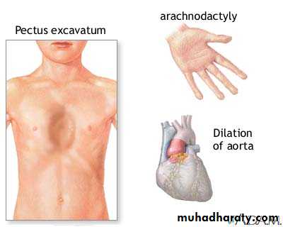 Morphology of Marfan SyndromeSkeletal abnormalities include long legs, arms & fingers, hyperextensibility of joints, depressed sternum