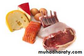 1.Animal source proteins: usually contain all the essential amino-acids in a suitable proportion. Thus it considered a first class proteins.[Meat, Fish, Milk & its derivatives, and Eggs] 2.Vegetable source proteins: the amount of proteins in plant cells is small in general . However, its amount is variable according to type of plant .[Potatoes , Beans, Peas, Nuts, Bran]