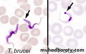 The 3-week life cycle in the tsetse fly begins with ingestion of trypomastigotes in a blood meal from the reservoir host. They multiply in the insect gut and then migrate to the salivary glands, where they transform into epimastigotes, multiply further, and then form metacyclic trypomastigotes, which are transmitted by the tsetsefly bite. thereby completing the cycle these species are rarely found as amastigotes in tissue, in contrast to T. cruzi and Leishmania species, in which amastigotes are commonly found.