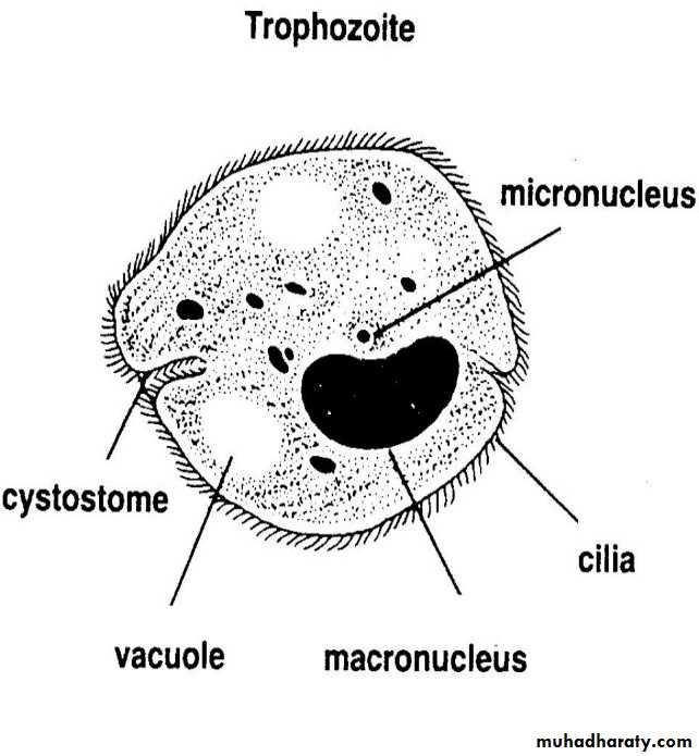 3- Class ciliates : parasites that move by means of cilia example Balantidium coli .
