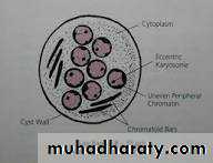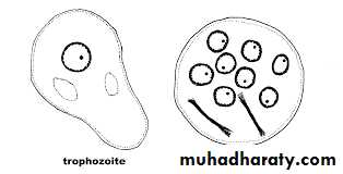The cyst : is large oval in shape , 10 – 30 µm and it has 1 - 8 nucli, the characters just like that of trophozoite.