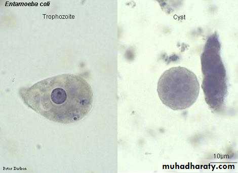 It is a parasite of the large intestine .Its life cycle is similar to that of E.histolytica. It is of medical importance only because it may be mistaken for E.histolytica .It has two stages (trophozoite& cyst). The important morphological features are :Trophozoite: