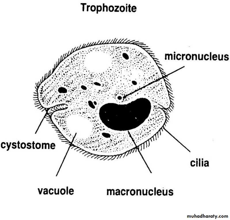 Balantidium is the largest protozoan and only ciliate known to parasitize humansTrophozoite morphology