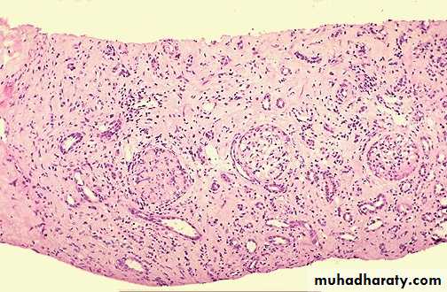 Chronic rejection of the kidney is dominated by interstitial fibrosis, tubular atrophy & loss of renal parenchyma due to arteriolosclerosis of arteries