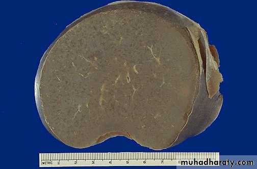 Macroscopically the affected organ enlarged, firm & has waxy consistency