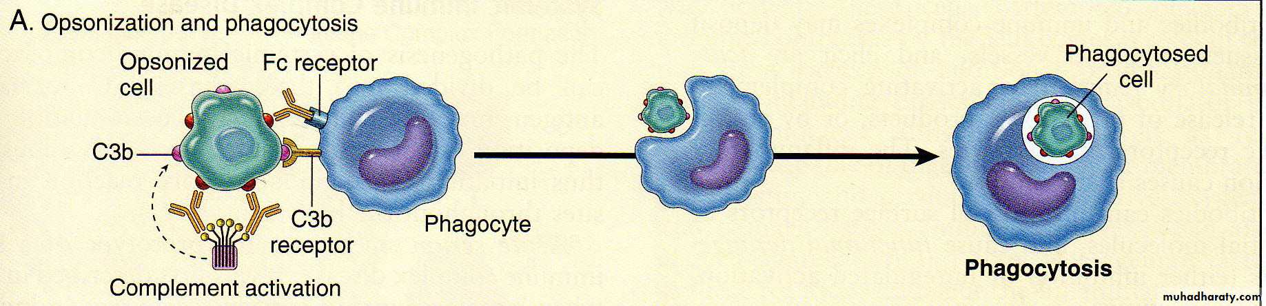 Is mediated by antigen present on cell surface by one of the following mechanismsOpsonization of cell by antibody & complement followed by phagocytosis
