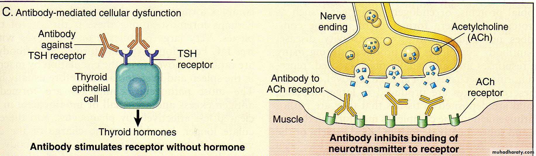 Anti-receptor antibodies disturb the normal function of the receptor leading to either impairment of cell function or stimulation of cells