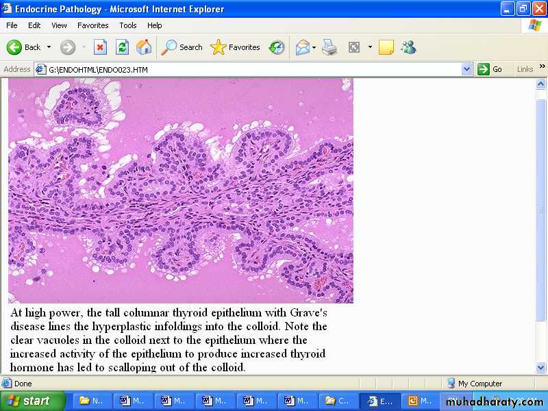 Antibodies to TSH-receptors activate thyroid cells in Grave’s disease leading to hyperplastic infolding into the colloid which show clear vacules next to the epithelium