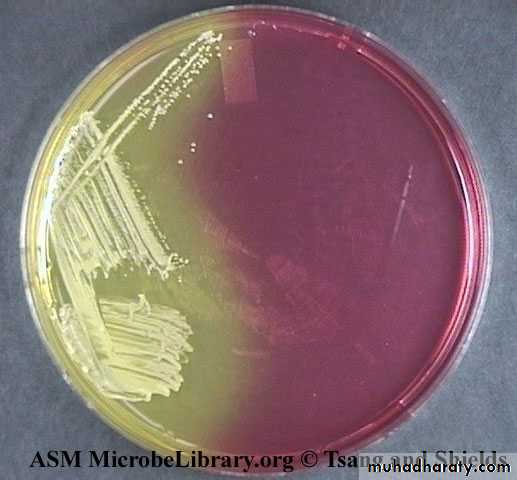 MSA is a selective and differential medium in microbiology It encourages the growth of a group of certain bacteria while inhibiting the growth of others. It contains a high concentration (7.5%-10%) of salt (NaCl), making it selective for gram positive bacterium Staphylococci since this level of NaCl is inhibitory to most other bacteria.It is also a differential medium for mannitol-fermenting staphylococci, containing carbohydrate mannitol and the indicator phenol red a pH indicator for detecting acid produced by mannitol-fermenting Staphylococci. Staphylococcus aureus produce yellow colonies with yellow zones, whereas other Staphylococci produce small pink or red colonies with no colour change to the medium.