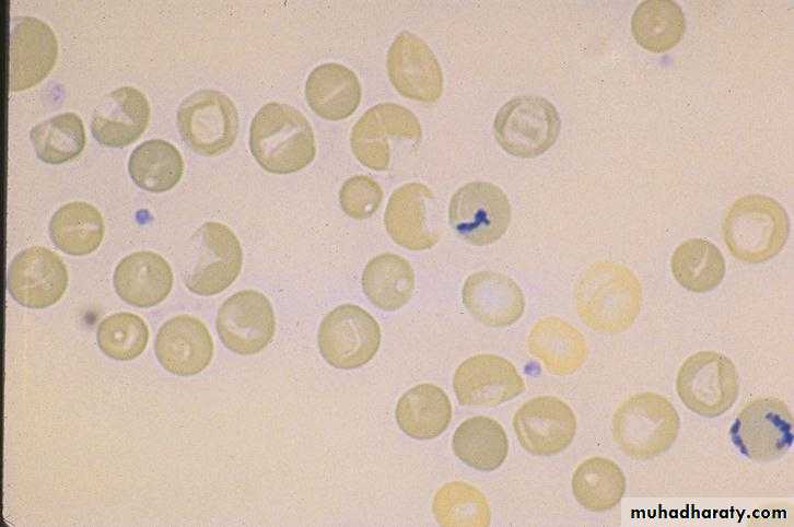 • Schistocytes and fragmented RBCs
