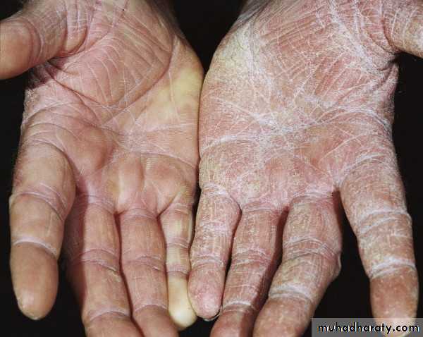 Tinea of the palm has the same appearance as the dry, diffuse, keratotic form of tinea of the sole.