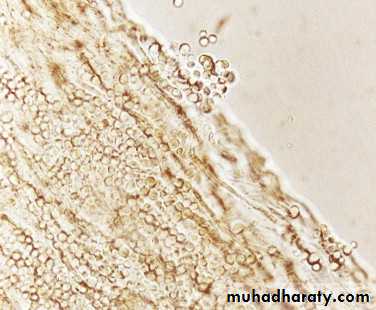 The yeast infects only the outer layers of the epithelium of mucous membranes and skin.